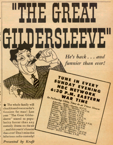 "Gildy" grew so popular that Kraft Foods—promoting its Parkay margarine—sponsored a new series featuring Peary's somewhat mellowed and always befuddled Gildersleeve as the head of his own family.